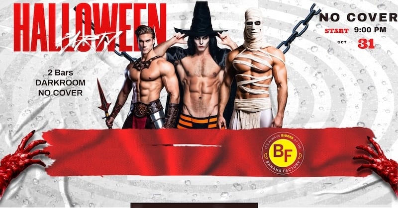The costume contest at this new bar has no cover charge and will be held on Friday, the 31st, starting at 9:00 PM. Enjoy the Banana Factory’s facilities, which include two bars and a darkroom.