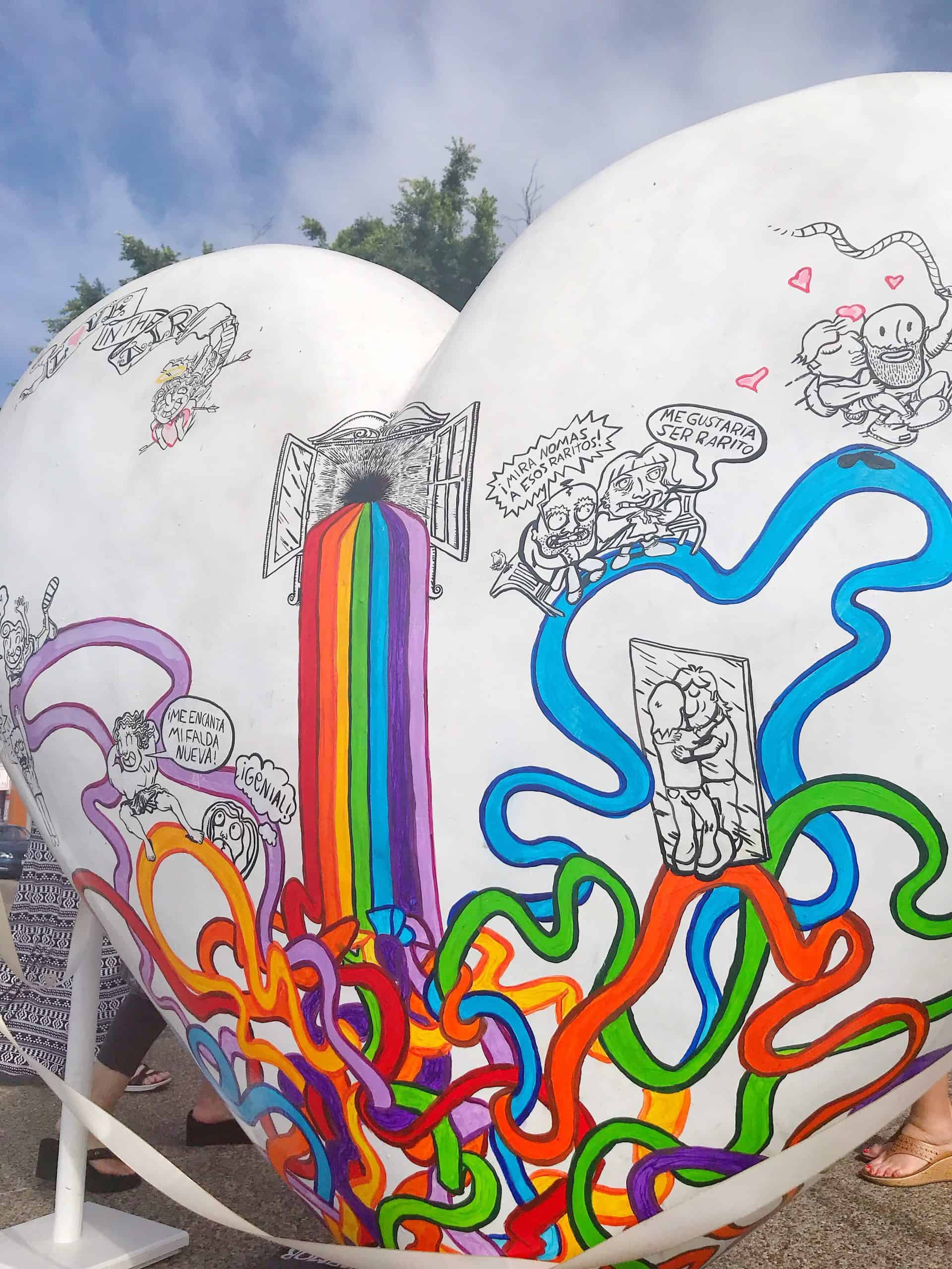 “Tlaquepaque Late” is the initiative of the National Chamber of Commerce of Tlaquepaque, with the participation of the City Council, local businesses and artists to project the history, craft vocation and diversity of the municipality and the State, contributing with 8 hearts among which stands out, for its LGBT+ theme, the work of the artist Pit.