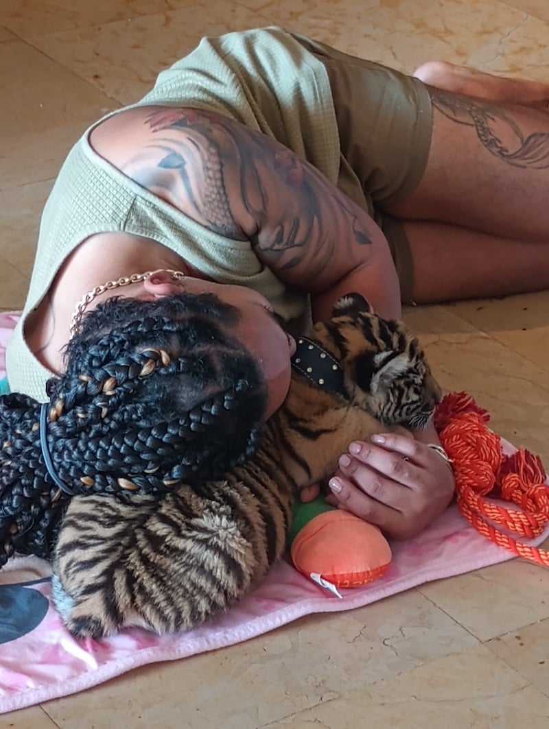 “I served as a consultant for an organization that kept tiger cubs at Puerto Mágico to offer photographs to visitors. Through this, I became familiar with the adoption process for cubs that are born so small they risk dying because they cannot compete for food from their mother. I adopted Sasha from a conservationist and breeder in Guadalajara. These organizations seek individuals who can finance their food and care, as they lack sufficient resources.”